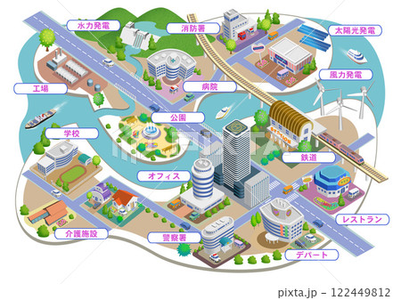 植根於日常生活的智慧城市街景圖示(帶文字)有多種變體