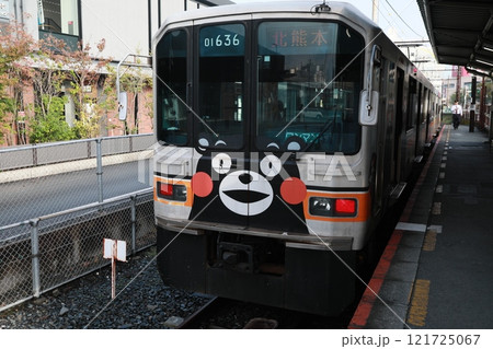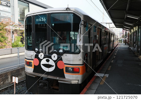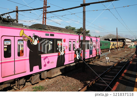 在鐵軌旁的堤防上感受春天的到來的“筑紫”