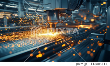 Cnc milling machine. Processing and laser cutting for metal in the industrial. Motion blur. Industrial exhibition of machine tools.