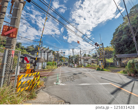 蓝天白云下的铁路道口