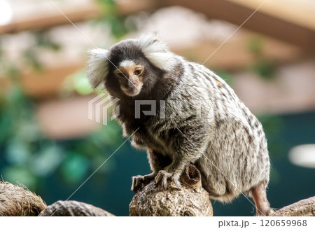 耳朵上有非常可愛的白色毛皮的普通狨猴[猴子]