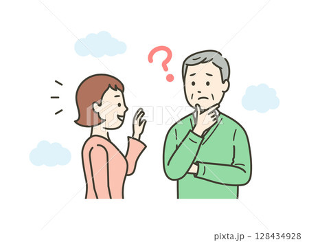 一位老人受到一位年輕女子的歡迎但忘記了是誰的上半身插圖