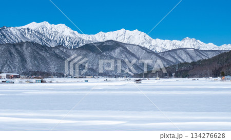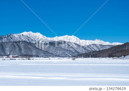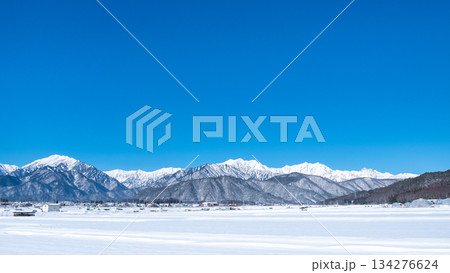 冬天從白馬村看到白雪皚皚的北阿爾卑斯山[長野縣]