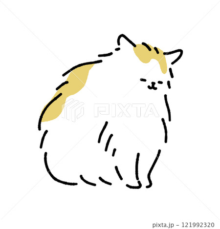 一隻貓的可愛手繪水彩插圖,一隻棕白色的長毛貓站在四腿上