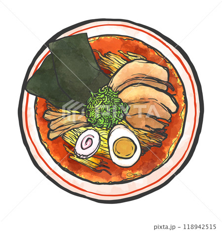 舉起筷子的醬油拉麵手寫畫筆畫風格插圖