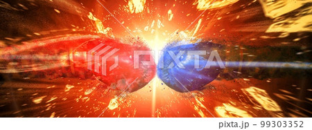 3d 插圖合成拳頭在拳擊概念中的碰撞以及火焰爆炸對拳頭的影響
