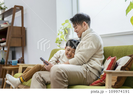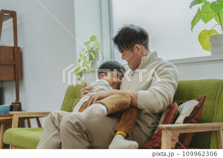 親子日常生活圖:30多歲的父親和上小學的兒子