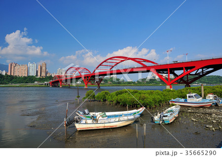 臺灣臺北關渡大橋 Asia Taiwan Taipei Guandu Bridge