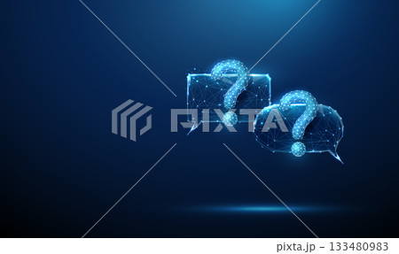 Blue futuristic chat bubbles with question marks. AI-powered chatbots, automated customer support, real-time response systems, intelligent assistance concept.
