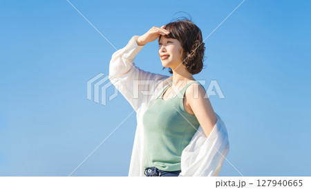 帶陽傘的女性(防紫外線、防曬霜、防紫外線、防中暑、防曬過敏、身體狀況不佳)