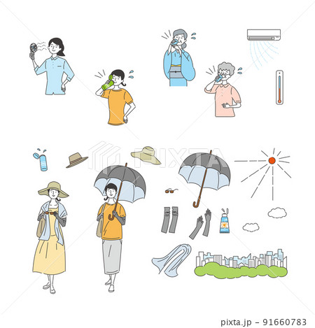 防暑圖示集/夏季健康措施插圖素材(防暑