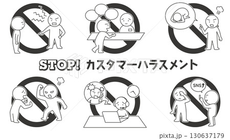 顧客騷擾預防插圖集:簡單的線條藝術向量素材,用於客戶服務和培訓