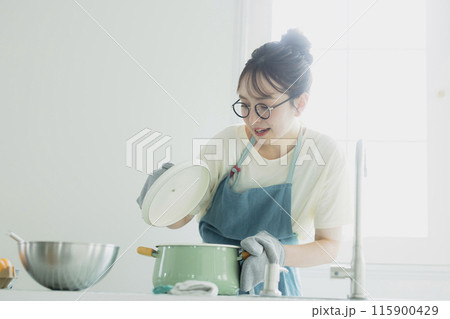 打開鍋蓋的女人