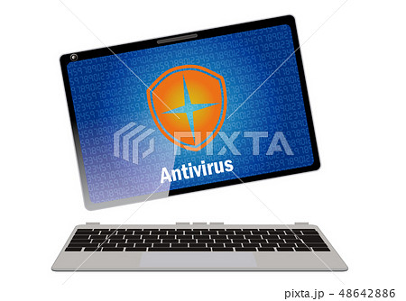 筆記本計算機/片劑的例證有強的安全圖像的|傳染媒介數據