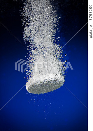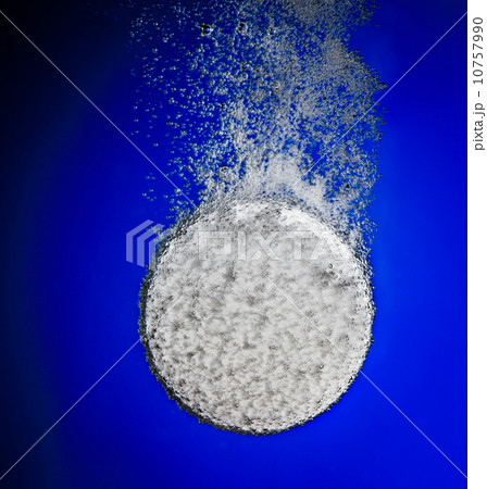 illustration of effervescent tablets, soluble pills falling in a glass with water with fizzy