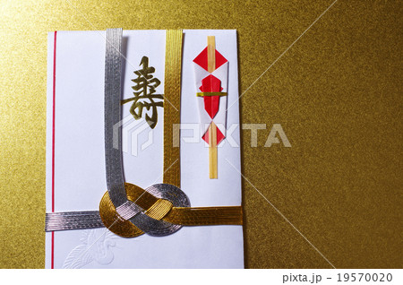 傳統日本紙和金、銀、水引的形象,“淡路結”,用於吉祥場合和慶祝活動