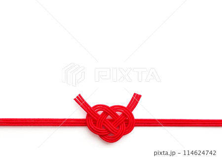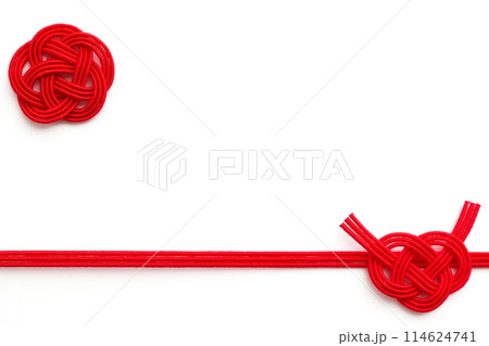 傳統日本紙和紅白水引的形象,“淡路結”,用於吉祥場合和慶祝活動