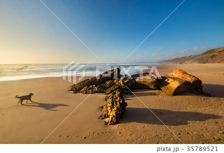Atlantic ocean view with cliff. View of Atlantic Coast at Portugal, Cabo da Roca. Summer day
