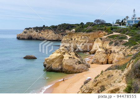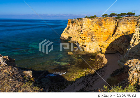 The rocky cliffs of Vale do Olival beach in Armacao de Pera, Portugal