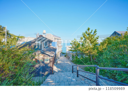 仰望兵庫縣赤穗市三崎閃耀之丘可愛的瓷磚階梯