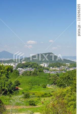 從奈良縣明日香村看向橿原市方向的魚尾山