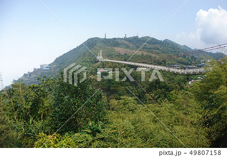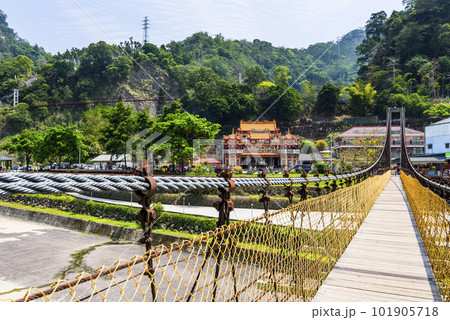 Building view of the Everlasting Suspension Bridge at Alishan National Scenic Area in Chiayi, Taiwan. The two bridges call Tencho and Jiku, were built during the Japanese rule period.