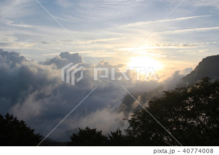 雲彩海在阿里山台灣Alishan劇烈的雲彩在台灣
