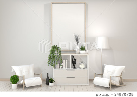 Poster mock up white cabinet, frame, chair