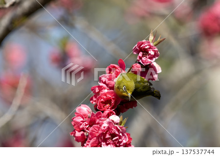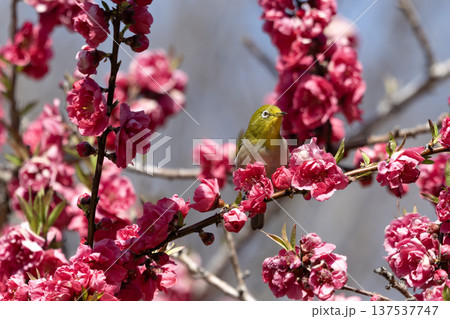 一隻日本繡眼鳥棲息在公園的繩子上。