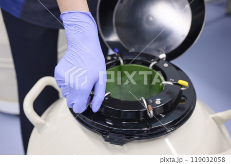 由實驗人員管理液態氮罐中的樣品