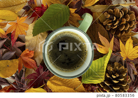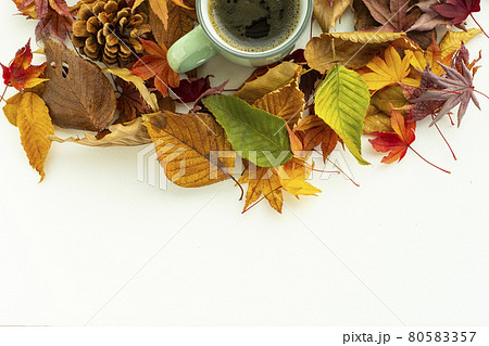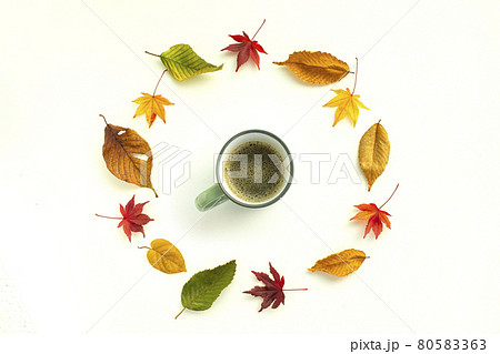 美麗的彩色樹葉和咖啡