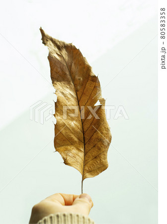 女人的手拿著一片落葉