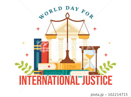 World Day for International Justice Vector Illustration with Earth, Scales or Judge Gavel in Flat Cartoon Hand Drawn to Landing Page Templates