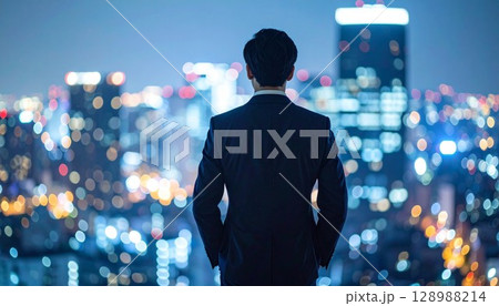 一個男性商人的插圖素材,他擺姿勢思考,雙臂交叉