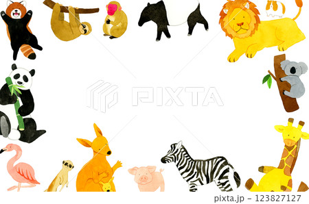 動物園裡的動物框架手繪水彩插畫背景素材