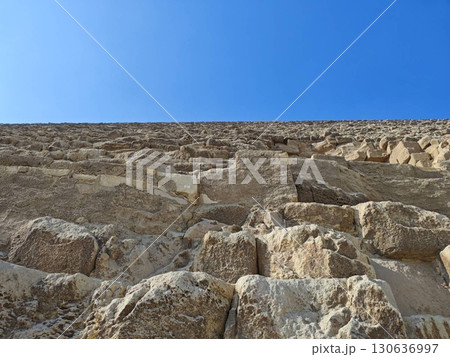 埃及吉薩沙漠胡夫金字塔階梯狀斜坡的特寫。