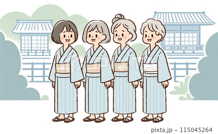 四位老年婦女泡溫泉插畫