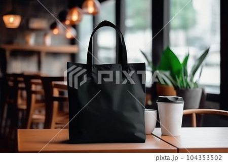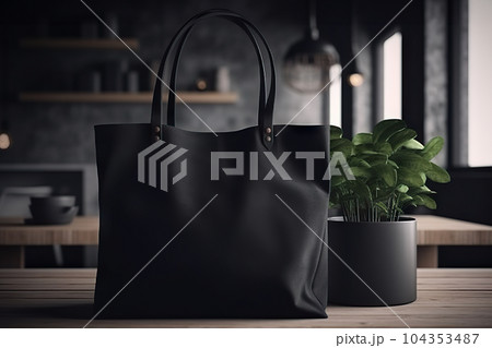 Elegant Black Canvas Tote Bag Mockup Stylish Shopper Set-up in a Home Interior. created with Generative AI