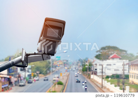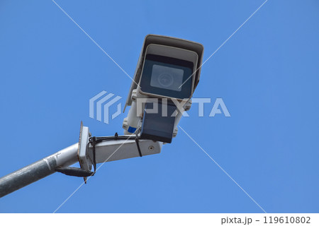 ip cctv camera installed on high pole to do the security by monitoring through mobile phone and computer to save human life and property, soft and selecitve focus.