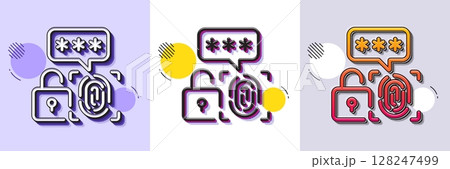 Biometric security line icon. Halftone dotted pattern. Gradient icon with grain shadow. Fingerprint scan sign. Privacy data symbol. Line biometric security icon. Various designs. Vector