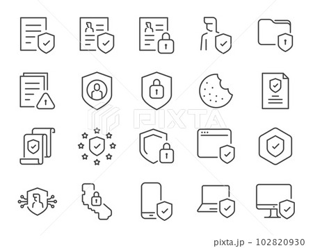 Privacy policy icon set. It included the gdpr, data protection, privacy notice, ccpa and more icons.