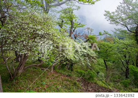 那須山脈和茶臼山的森林裡盛開著白色的杜鵑花