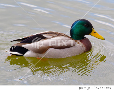 雄性綠頭鴨在水面上游泳 冬季野生鳥類