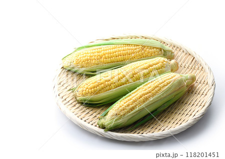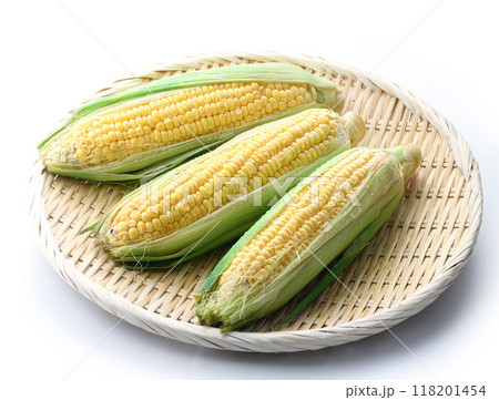 帶殼玉米的排列/夏季時令蔬菜的形象