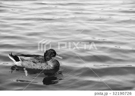 水上 游泳 鴨子 綠頭鴨 動物 鳥類 黑白