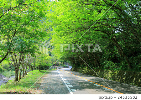 新鮮的綠色Yabakei Ichimoku八月在陽光明媚的五月山都靈山和Meotoiwa