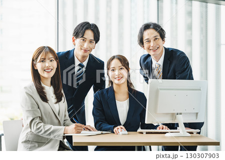 在辦公室工作的微笑商人(多人,大量人員,聚集)
