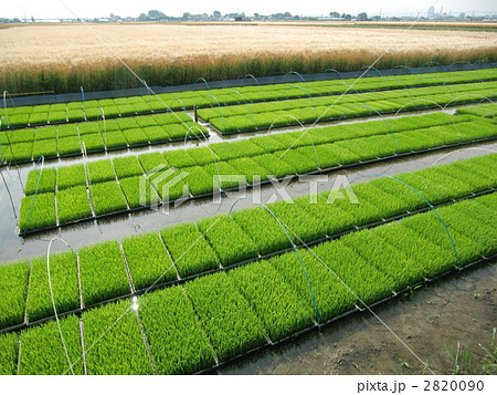 初夏雙茬收穫的麥田照片 [岡山縣瀨戶內市]