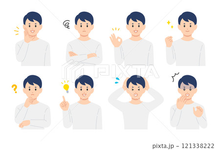 商務人士正面和負面的臉部表情集/困擾、擔心、微笑、握拳等插畫素材