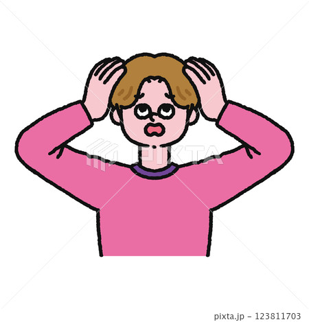 戴眼鏡/雙臂交叉/思考/臉頰的男士姿勢插圖素材